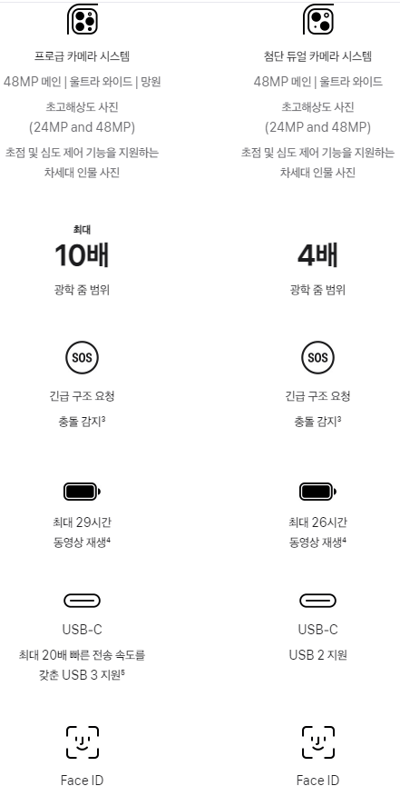 자사 아이폰15아이폰 15 시리즈는 아이폰 14보다 외관면에서 한층 더 발전했고, 아이폰 15 프로와 아이폰 15 일반제품은 조금 차이가 나는 편입니다. 특히 프로는 A17칩이 탑재되어 있고, 일반은 A16칩이 탑재되어 성능면에서 약간의 차이를 보입니다. 카메라의 광학줌 범위가 프로는 10배, 일반은 4배입니다. 공통적으로 충돌감지 긴급구조요청 SOS가 내장되어 있으며, Face ID 기능도 공통적으로 내장되어 있습니다.